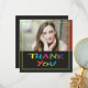 A cute photo Graduation "thank you" in colourful lettering with a heart in the "O" in "You.'