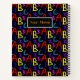 This fun design is perfect for back to school with a colourful letters ABC and numbers 123 pattern on a black background and a black banner on each side for you to add your subject and name in a cute coloured font. You can change the font and colour of the text of the subject and name placeholders.