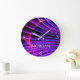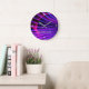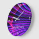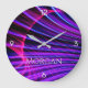 Personalise name in white on Colourful Light Curve on black for a contemporary and dynamic look. Makes a great gift. Clock has 4 white numbers. Colours: blue, purple, pink and black.