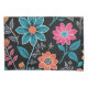 This seamless pattern features a variety of colourful flowers and leaves on a dark background. The flowers are in a variety of colours, including red, orange, yellow, pink, purple, and blue. The leaves are blue and grey.