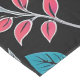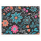 This seamless pattern features a variety of colourful flowers and leaves on a dark background. The flowers are in a variety of colours, including red, orange, yellow, pink, purple, and blue. The leaves are blue and grey.