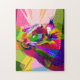Beautiful colourful graphic art of a lion turned into a jigsaw puzzle