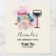 Event bottle labels with a delightful image. 3 colourful macarons, pink, green and blue with a fancy rose floral bouquet and a splash of pink watercolor behind. A wine glass silhoette beside the sweet dessert. Delicious and stylish too! Light yellow background.