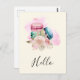 Colourful Macarons and Flowers Watercolor Hello Postcard