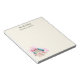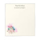 A notepad with a delightful image. 3 colourful macarons, pink, green and blue with a fancy rose floral bouquet and a splash of pink watercolor behind. Delicious and stylish too!