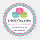 © 2021 Socialite Designs Inc. Bakery packaging seals with a set of three macarons. The banner for your text has a scalloped border in colours of pink and teal. A wonderful design sticker to use on baked goods boxes.