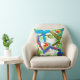 Original fine art design of colourful macaws by artist Carolyn McFann of Two Purring Cats Studio printed on a quality pillow for parrot lovers by American Mojo.