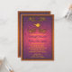 A fun and colourful wedding invitation featuring a magic Arabian lamp and ornate details. The invitation is a gradient purple and pink colours with splashes of gold. The invitation is framed in gold making it playful yet sophisticated.