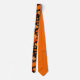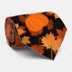 This maple leaves and pumpkins pattern neck tie features a colourful autumnal pattern of varied size maple leaves in orange, gold and brown arranged randomly with a few scattered pumpkins on a black background - by katz_d_zynes