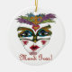 Colourful Mardi Gras Glitter Feather Mask Ceramic Ornament