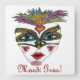 Colourful Mardi Gras Glitter Feather Mask Square Wall Clock