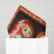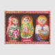 vintage art with matryoshka dolls in bright colours, pretty faces, head scarves, and floral decorations.