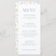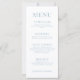 Enhance the charm of your wedding reception with these sophisticated and stylish botanical themed wedding menu cards. Decorated with delicate light blue calligraphy script and bouquet intertwined with colourful pastel wildflower and meadow flower blooms.