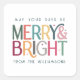 Colourful Merry and Bright Cute Retro Stars Holida Square Sticker