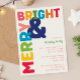 Capture the joy and magic of the holiday season with this unique and festive, colourful merry and bright holiday party invitation. Its simple yet fun design features a rainbow colour palette of red, green, yellow, blue, orange, and pink, creating a vibrant and cheerful atmosphere. The creative and minimalist approach, with bold typography, adds an original and trendy touch. Perfect for children and kids at heart, this design embraces a light and casual feel, spreading happiness with its cheerful wording. Celebrate December in style with this delightful greeting!