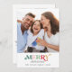 This colourful Merry Christmas year in review portrait holiday card is the perfect modern holiday greeting. The simple design features cute and fun typography with alternating coloured letters in red, blush pink, emerald green, pastel green and yellow gold. Personalise the card with 5 family photos, your family name, first names, and year. Include a year in review or family newsletter on the back of the card.