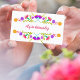 Colourful business cards with floral borders of Mexican fiesta flowers. The template is set up for you to add your name or business name in brush script lettering on the front plus, you can add your position or profession and contact information on the back.