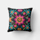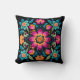 mexican floral pillowfiesta throw pillowcolourful folk art cushionblack background floral designcinco de mayo decorvibrant mexican patternboho fiesta accent pillowcultural home decorbold floral cushionmexican style throw pillow