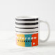 Colourful Mid Century Abstract Personalised Name Coffee Mug features a colourful stripe pattern with your personalised name in simple black and white script on an abstract background. Personalise by editing the text in the text boxes provided. Perfect gift for birthday, Christmas, Mother's Day, sister, cousins, best friends and more. Designed by ©Evco Studio www.zazzle.com/store/evcostudio
