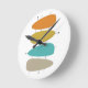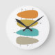 This fun mid century clock features 4 teardrop shapes on black lines, in turquoise, orange, tan, and gold. If you're looking for a style to liven up your walls - this is it!