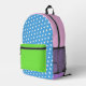 Multicolor mixed patterns backpack. Creative colourful aesthetic multipatterns backpack. Creative unique style multi colour backpack. Artsy eclectic style back to school backpack. Bright fashion stylish backpack. Eccentric style colourful design. Original diamond and dots mix pattern backpack.
