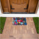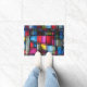 Beautiful doormat with colourful Modern Abstract pattern with a Stained glass look similar to a Mondrian composition