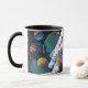 Colourful Modern Astronaut Space Monogram Personalised Name Coffee Mug features an astronaut floating though outer space with colourful planets and swishes and personalised with your monogram and name in modern script typography. Perfect as a gift for space lovers, family and friends for birthday, Christmas, holidays, Father's Day, brother, husband, partner, best friends, work colleagues and more. Designed by ©Evco Studio www.zazzle.com/store/evcostudio