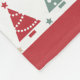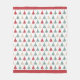 This Holiday theme fleece blanket features a colourful pattern of red, green, and gold modern design Christmas trees. The images are placed on a white background, with a matching red border at top and bottom. Festive! Pattern design credit to https://www.etsy.com/shop/ephrazydesign.