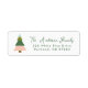 Cute holiday return address labels featuring an illustration of a Christmas tree in shades of green and blush pink. Your name is displayed in a green whimsical script with your address shown below. The colourful Christmas tree address labels are perfect to use with holiday cards, party invites, etc.