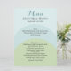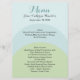Stylish wedding reception menu, done in rounded bands of aquamarine, aqua and pale green. Personalise the dark grey text for your wedding reception.