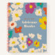 A scatter of modern, illustrated flowers in bold and feminine colours of ivory, yellow, orange, violet and teal pop against a dusty blue background making this notebook an ideal accessory for taking notes, journalling, school, work or as a diary. Personalise the two coordinating coloured text boxes on the front with a name or school subject and the text on the back with contact information if the notebook is lost and then found.