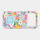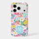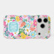 Customise this gorgeous modern colourful flower garden of flowers in pink, blue, orange, yellow and white iPhone 17 pro case with your your initials in a modern CAP font in white on blue. It's so vibrant and happy!