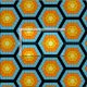 Seamless geometric pattern featuring geometric hexagonal shapes in black, turquoise, orange and yellow shades.