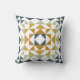 Colourful Modern Quilt Block Geometric Earthy Teal Green and Yellow Throw Pillow
