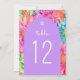 Colourful Modern Tropical Watercolor Floral Wedding Table Numbers features colourful watercolor tropical flowers in pink, purple, orange, green and turquoise. Add your custom table number in elegant white calligraphy script typography. Personalise by editing the text in the text boxes. Designed for you by Evco Studio www.zazzle.com/store/evcostudio