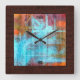 Colourful Modern Wood Grain Burlap Border Square Wall Clock