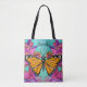 This colourful tote bag features a monarch butterfly surrounded by pretty flowers in shades of pink and purple. Easily change or remove the featured name by clicking "Personalise this Template".