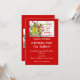 This flat card party invitation is vibrant red with a group of colourful monkeys with party hats, horns, and balloons in a yellow barrel with the text " We're Having More Fun Than a Barrel of Mondeys!" Customise your information with the templates.