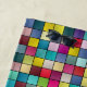 Colourful mosaic with small squares in a seamless geometric pattern.