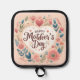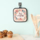 Colourful picture of a heart, flowers and leaves, is featured on this pot holder for Mother's Day. With message, "Happy Mother's Day", makes this a sweet gift to thank Mum for all her wonderful cooking! Has silver quilted heat protection and hanging loop too.