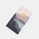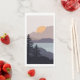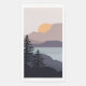 Abstract illustration of colourful mountain lake sunrise with sun, mountain peaks and pine trees decoration for everybody who likes nature, camping, hiking etc.