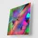 Stamp with abstract drawing of some shapes that have been subjected to digital design effects such as movement, twists and a slight carving effect, and the scratches cause a perception of something being thrown, and, a rustic tone mixed with something scandalous almost psychedelic.