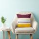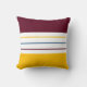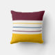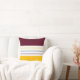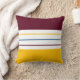 Modern throw pillow features a simple striped design in fall colour palette: amber yellow, white, and mulberry purple.