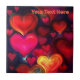 Multiple, colourful hearts on a dark background. Customise by adding your own text. You may change both the font and text colour.