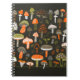 Fairy set with colourful mushrooms - chanterelles, russulas, some poisonous. Bright palette with green and orange, hand drawn sketch doodle style. Square composition, collection on dark background