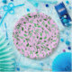 A jumble of colourful green and dark green music notes against a pink background is a unique design for musicians, music teachers and students at birthdays and holidays.