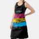 Bright and colourful MUSICAL NOTES personalised apron, with thick raspberry pink, yellow, cyan blue and black panels with black musical notes and staves overlay. At the top panel, there is a PLACEHOLDER name and MONOGRAM, which are both CUSTOMIZABLE. Below is a Scripture verse for Psalm 150:6, which says LET EVERYTHING THAT HAS BREATH PRAISE THE LORD. This colour scheme would be ideal for those who love to make bold colour statements and also for those who love music. Other bold variations available, which are suitable for the whole family.