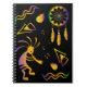 Colourful southwest dreamcatcher and abstract symbols on black background kokopelli notebook. Native American Southwestern Abstract Kokopelli Cave Petroglyphs. Vivid colour combination that you can customise background colours to match your taste. Kokopelli is a fertility deity, a humpbacked flute player, Native American cultures. Attributed to ancient aliens or tribal art and inspired by cave and rock drawings. Customise your Kokopelli journal notebook. Great gift idea for those that ponder the ancient mysteries of the planet. All symbol images are resizable too.