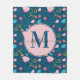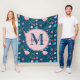 Colourful Navy Blue Butterfly Flowers Leaf Monogram Fleece Blanket