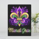 Colourful Neon Mardi Gras Fleur de lis Holiday Card